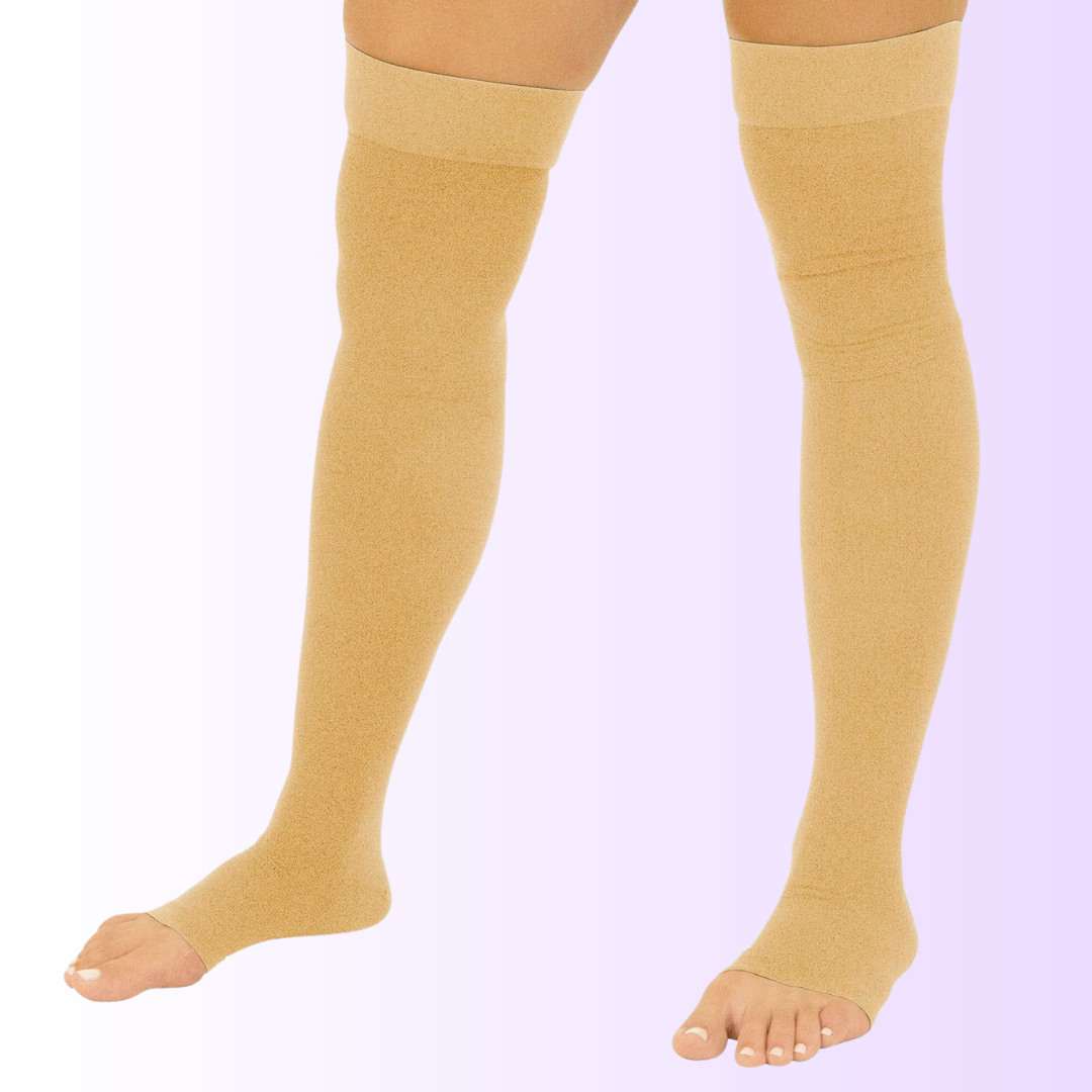Designed with clinical input, these stockings feature a silicone grip band and medical-grade fabric that maintain therapeutic compression and stay securely in place throughout your daily activities.