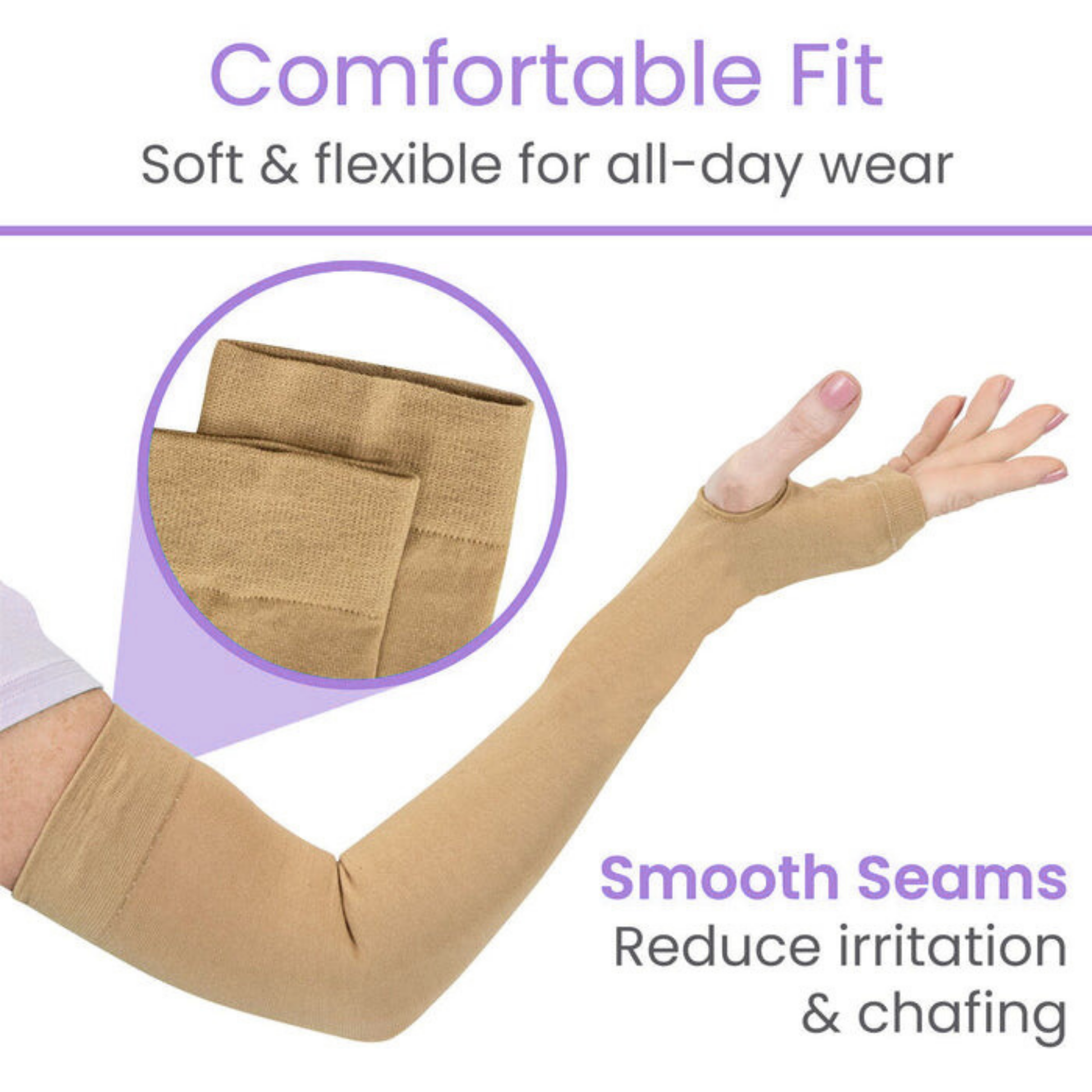 All-Day Comfort DesignSeamless arm construction and cushioned palm coverage provide exceptional comfort during extended wear. Breathable fabric technology keeps arms cool and dry throughout your daily routine. Soft-touch materials feel gentle against sensitive skin while maintaining prescribed compression levels.