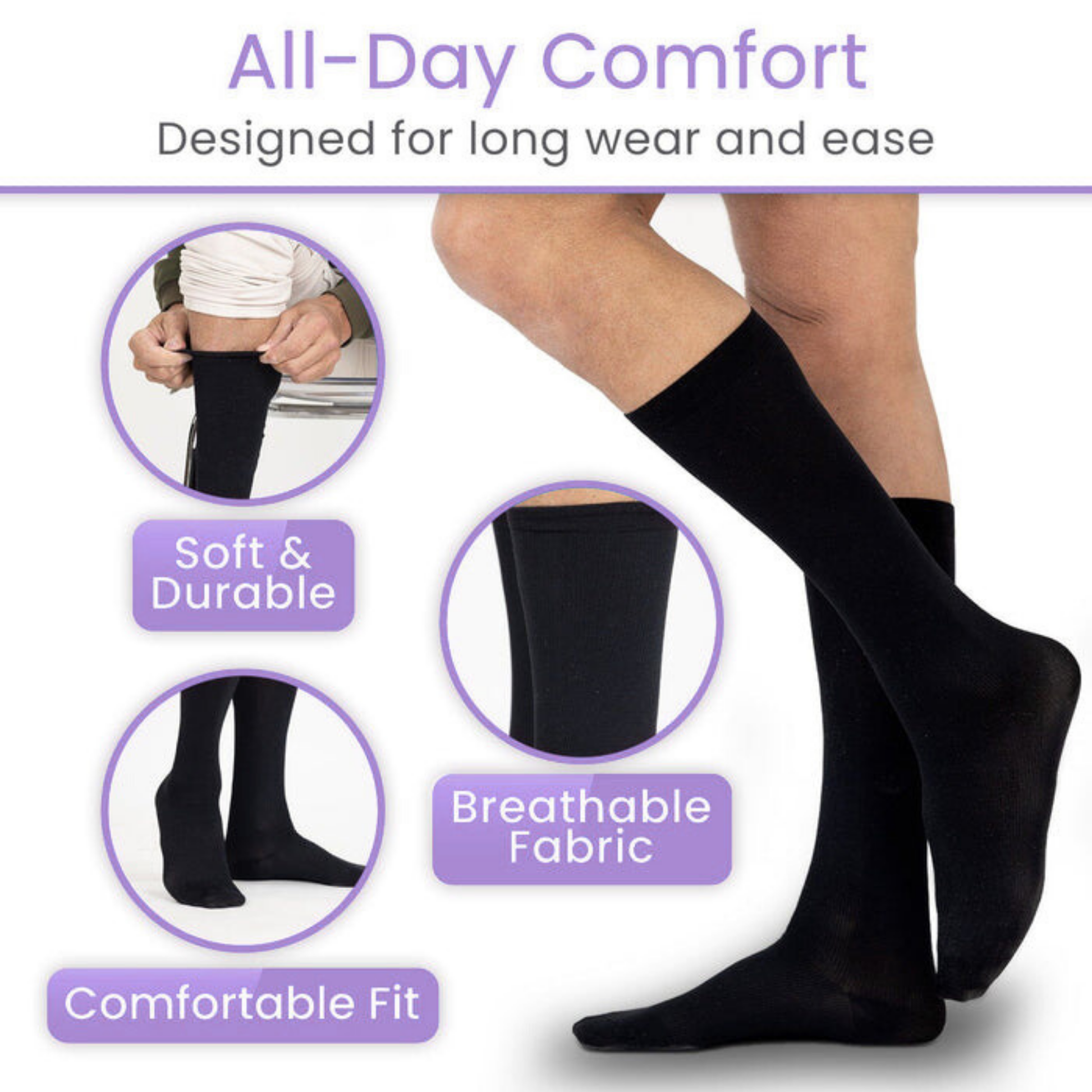 These are ideal for men who need daily circulation support without compromising professional appearance—perfect for business travel, office work, long commutes, or extended standing.