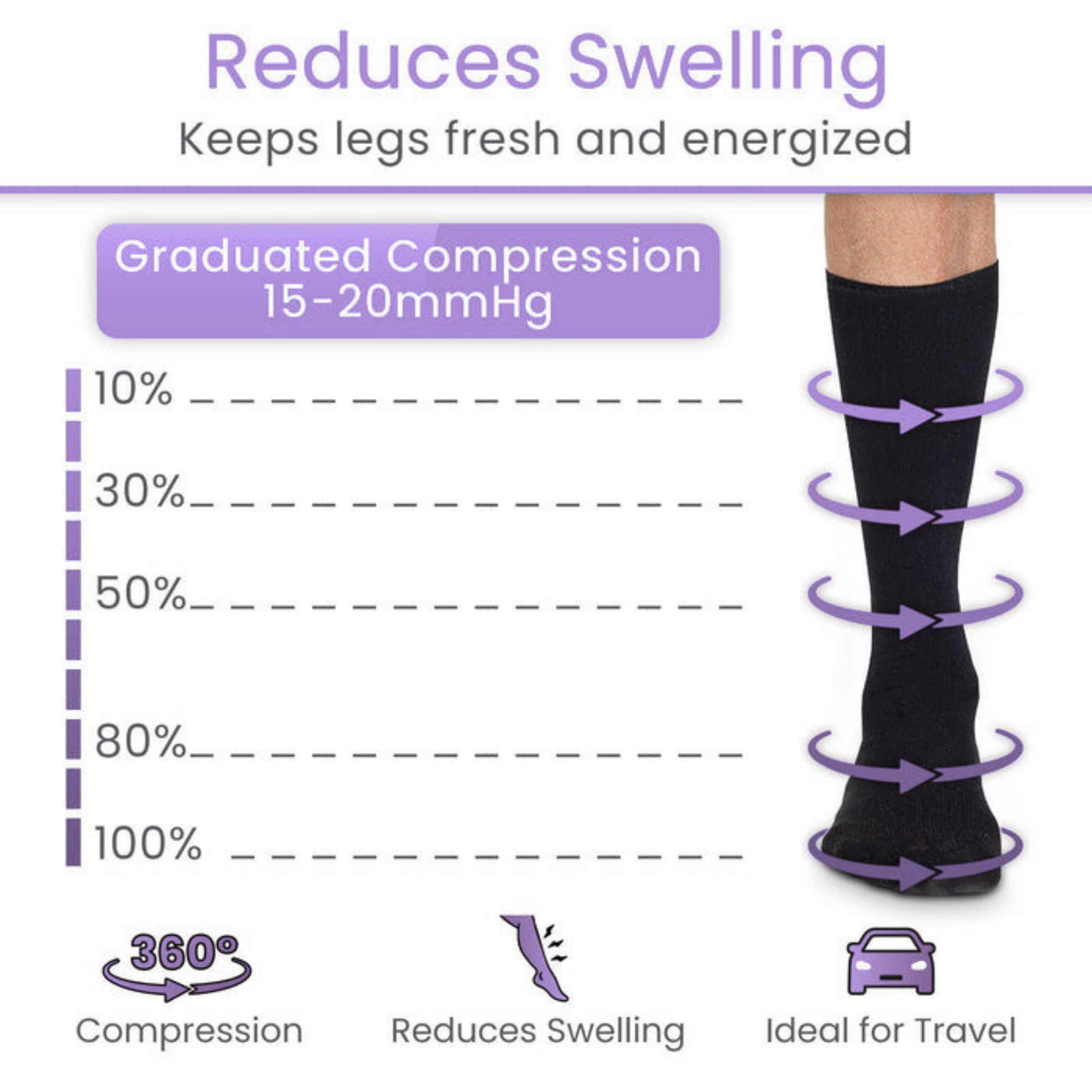 ✓ 15–20 mmHg Graduated Compression: Promotes circulation and reduces leg swelling during long periods of sitting or standing